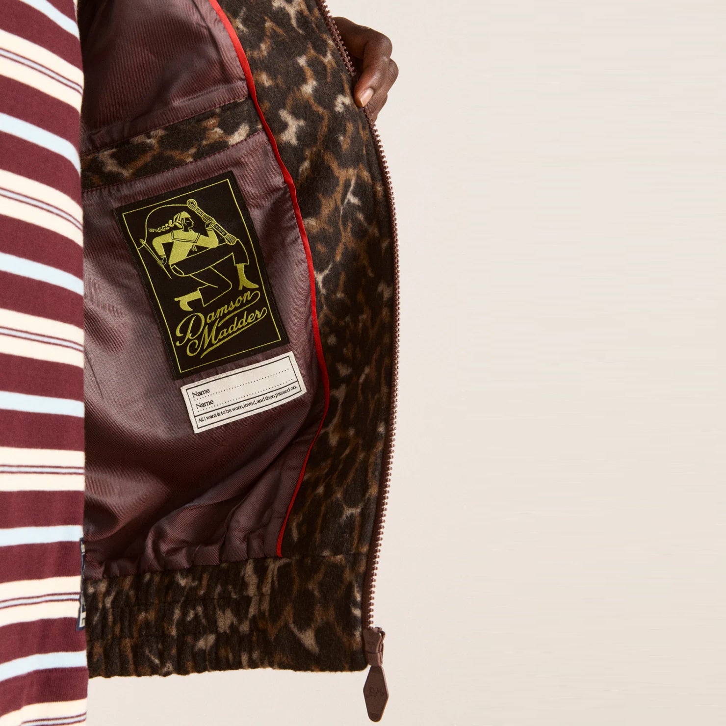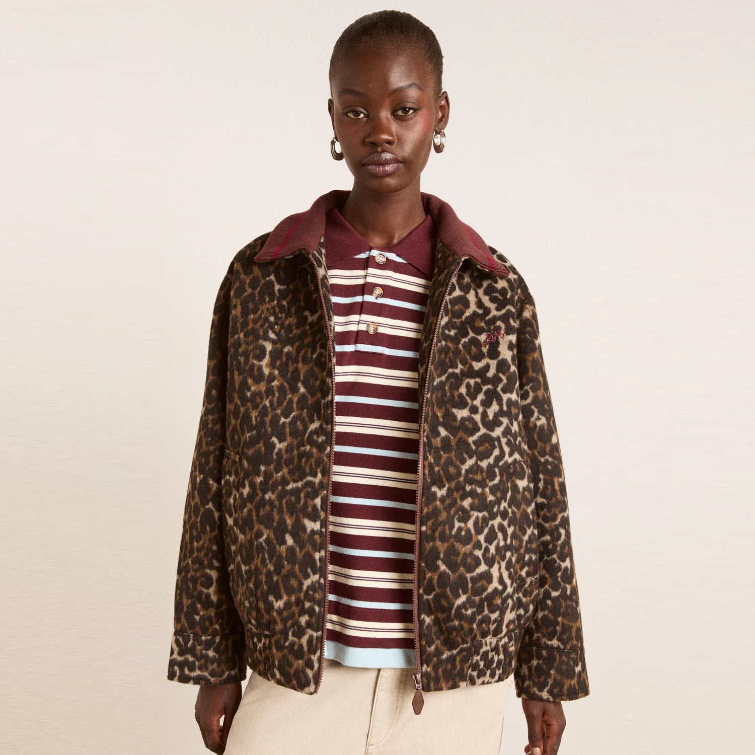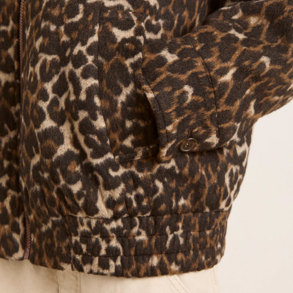 Designed for everyday ease, the Pixie Leopard Bomber features a relaxed silhouette with a zip-front fastening and discreet side seam pockets for functionality without bulk. A subtle “DM” embroidery adds a signature touch, while an internal pocket offers added practicality.