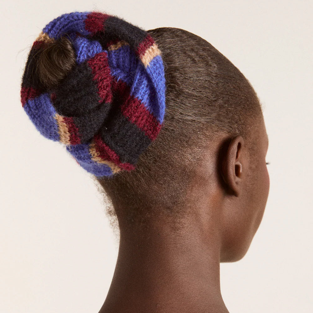 A playful twist on a classic, this oversized scrunchie is crafted from a cozy knit blend with bold stripe detailing. Designed to stand out, it adds texture and colour to any look - whether worn in the hair or on the wrist.
